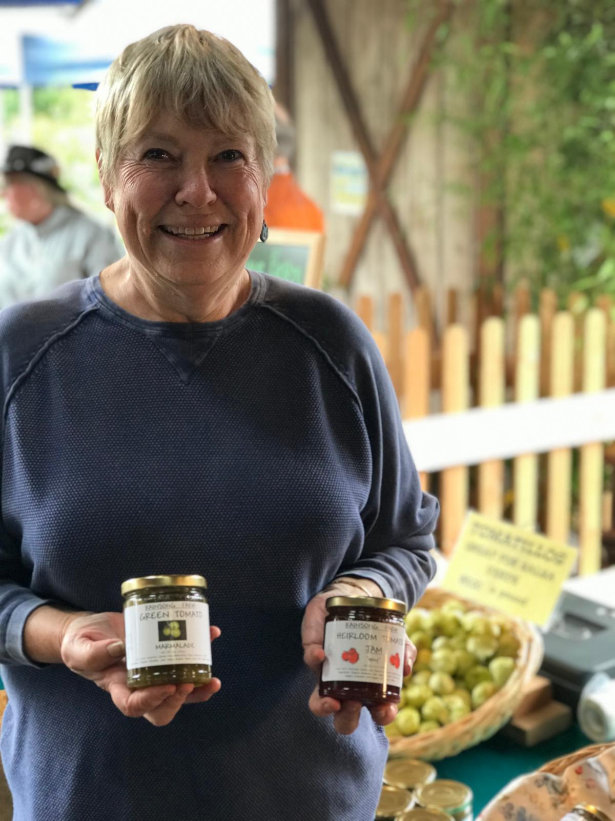 Have you tried the tomato jam from RainSong Farm yet? Do yourself a favor and next time you are at the market stop by and try Nancy’s incredible recipes. Each jar features a whole pound of heirloom tomatoes, all grown by Nancy. She doesn’t use pectin in her recipes so each jar of regular or spicy tomato jam or green tomato marmalade has a rich, intense flavor. Stop by Thursday through Sunday, while supplies last, to try this unique product!